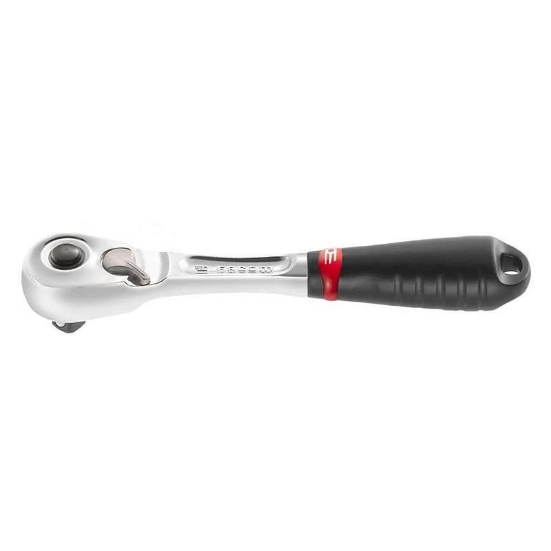 Système “paume de main”, permet d’appuyer sur la tête du cliquet pendant le (des)serrage sans risque d’inversion accidentelle du sens de rotation