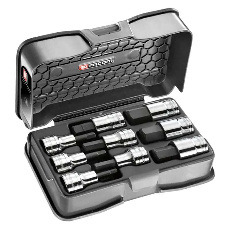 Contenu : 10 douilles porte-embouts hexagonales : 5 – 6 – 7 – 8 – 10 – 12 – 14 – 17 – 19 mm
