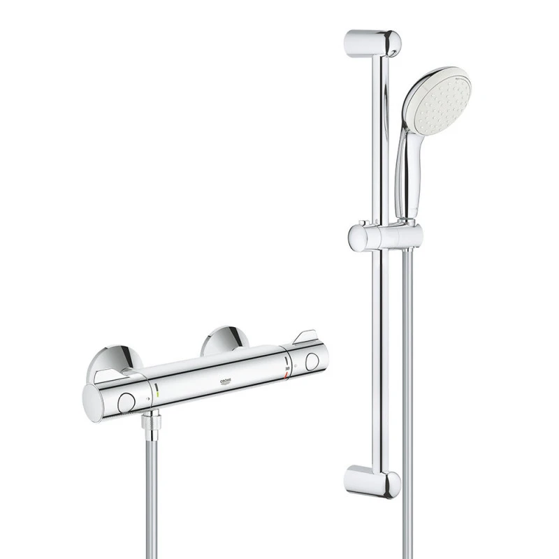 Avantages produit Combiné thermostatique GROHTHERM 800 GROHE 34565001 – tête Ø 10 cm & douchette 2 jets + flexible 175 cm – Chrome :