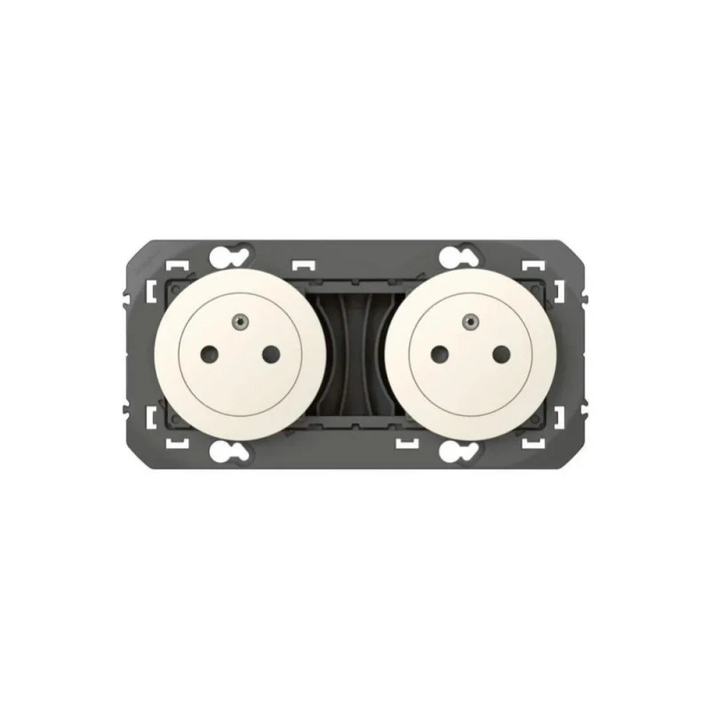 Cette double prise de courant Dooxie, de la marque Legrand, est utilisée pour mettre sous tension les appareils électrodomestiques.