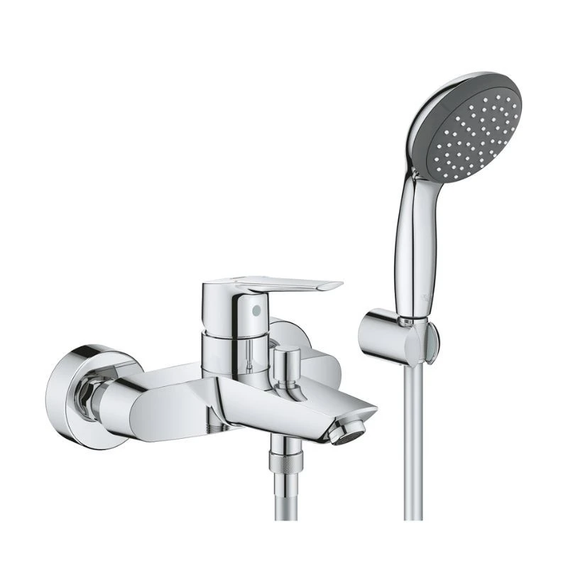 Ensemble mitigeur bain/douche START + Set de douche Vitalio GROHE 23413002 douchette, flexible et support mural – chrome :