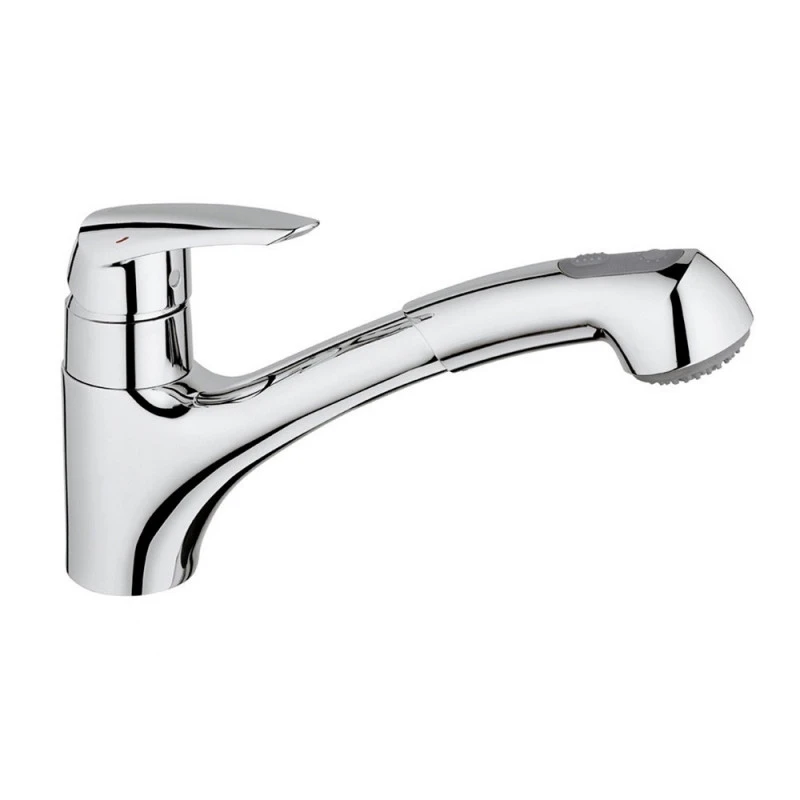 Avantages produit Mitigeur évier EURODISC GROHE 32257001 – bec bas – douchette extractible 2 jets – chrome :